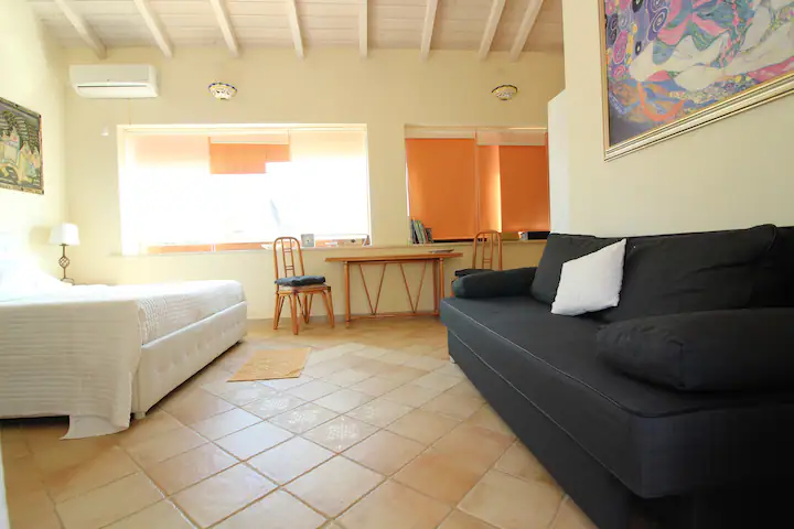 Property Overview Are you looking for a five-star apartment near the Poetto beach and just minutes away from Cagliari? This accommodation is located in the district of Quartello, close to multiple bars, supermarkets, spas, parks and restaurants. You will have an opportunity to stay in a beautiful apartment, equipped with all the necessary comforts, such as a smart TV and a modern kitchen. The accommodation is perfectly located so that the beautiful beaches of southern Sardinia such as Geremeas, Kale Moru, Mare Pintau, Villasimius and Pula will be all at your disposal. Property Description The apartment is fully equipped with modern furniture and has a parquet flooring. It includes a living room with a sofa bed, a modern kitchen, a spacious bathroom, and a large bedroom with a double bed. From either of the rooms, you have an access to a beautiful veranda, where you can enjoy the views of a lovely garden. The veranda has been recently renovated with an awning to provide the highest level of privacy and also to protect from the sun. The beautiful flowers and ornamental plants all over the garden will surely be pleasant to the eye. The outdoor tables and chairs on the veranda might become your favorite place to spend evenings at and help you feel like home. And also, in this veranda you’ll have the possibility to use a barbecue. Each room is equipped with a 47-inch smart TV, which you can use to browse the internet, watch international channels, listen to music, watch YouTube videos and much more. In the evening, after a day at the beach, you can rest comfortably on a large sofa in the living room, watch the news and your favorite TV channels. In case you need to do business while on vacation, you can work peacefully at the desk in the bedroom, a with a stable internet connection is guaranteed. Neighbourhood’s description Quartello is a quiet but central neighborhood in the city of Quartu Sant’Elena. After the capital, Quartu Sant’Elena is the most populous center of the metropolitan area of Cagliari. Located in southern Sardinia, it is a city of ancient traditions with a splendid coastline. The place is ideal for seaside stays, as it is well served by bars, restaurants and supermarkets, it is only fifteen minutes from the center of Cagliari and nine minutes from the splendid Poetto beach. The Poetto beach is an 8 km long coast that overlooks the Gulf of Angels, in the central-southern coast of Sardinia, and conquers everyone with its soft sand, crystal clear sea, relaxing corners, characteristic kiosks that offer refreshing aperitifs and a fun animation, and the chance to participate in numerous sports activities. It is possible to rent bicycles, beach and sports equipment, and you can find countless restaurants and bars for all tastes, such as Aria Beach Lounge, which often organizes events full of music, lights and colors, just a few steps away from the characteristic tower of Cargangiolas , built by the Spaniards at the end of the 16th century. The Lido Mediterraneo Pizzeria Restaurant will offer the relaxation you will need with its spectacular windows overlooking the sea, and if you are looking for a different evening, the Acqua Club and Restaurant by day is an excellent restaurant and pizzeria, at night it turns into an exclusive place where you can find a unique atmosphere with colors and music from the seafront. On the promenade of the gulf there is also the Opera Beach Arena, often a place of great musical and theatrical performances. You can also easily move and visit all the most beautiful beaches in southern Sardinia, such as Geremeas, Kale Moru, Mare Pintau, Villasimius, Pula, with their emerald green waters and the opportunity to practice numerous water sports. You can also walk in the wonderful park of Molentargius among the local fauna and flora. In short, Cagliari, the beaches, the day and night clubs, the services make this place perfect for relaxation and a fantastic starting point for your walks and excursions.