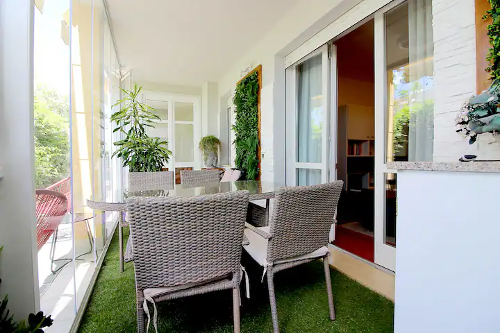 The veranda has been recently renovated with an awning to provide the highest level of privacy and also to protect from the sun. The beautiful flowers and ornamental plants all over the garden will surely be pleasant to the eye. The outdoor tables and chairs on the veranda might become your favorite place to spend evenings at and help you feel like home. And also, in this veranda you’ll have the possibility to use a barbecue.