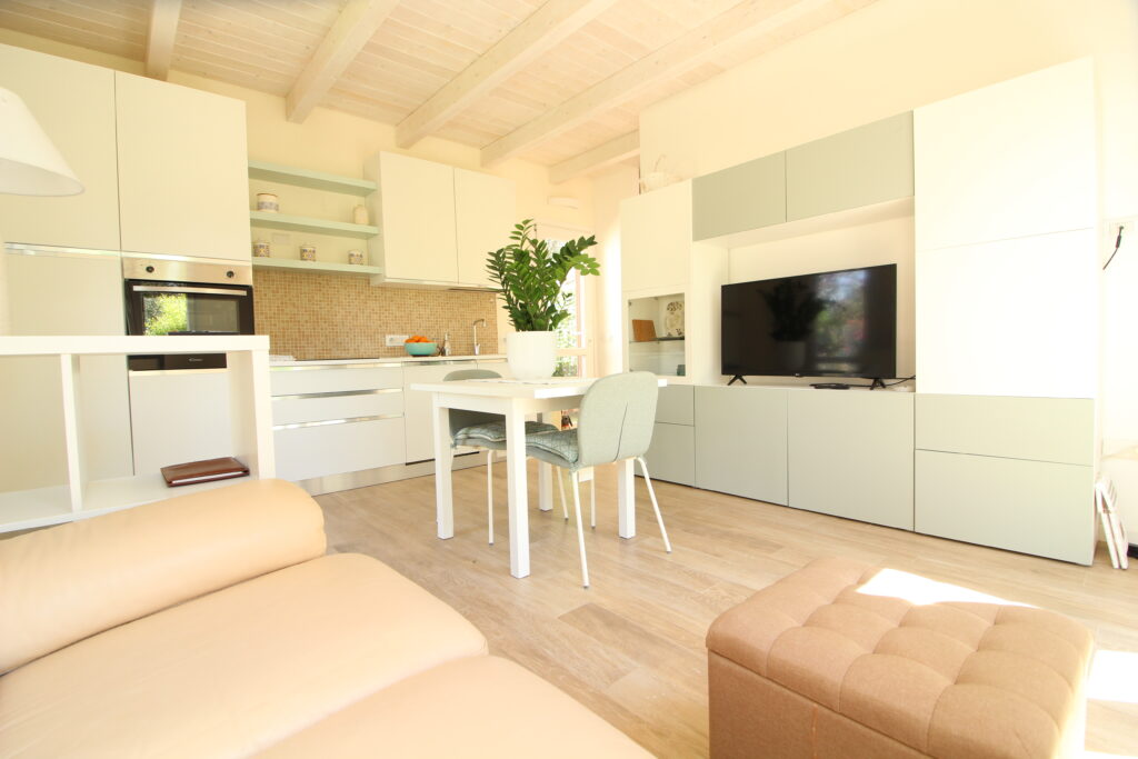 The apartment is fully equipped with modern furniture and has a parquet flooring. It includes a living room with a sofa bed, a modern kitchen, a spacious bathroom, and a large bedroom with a double bed. From either of the rooms, you have an access to a beautiful veranda, where you can enjoy the views of a lovely garden.